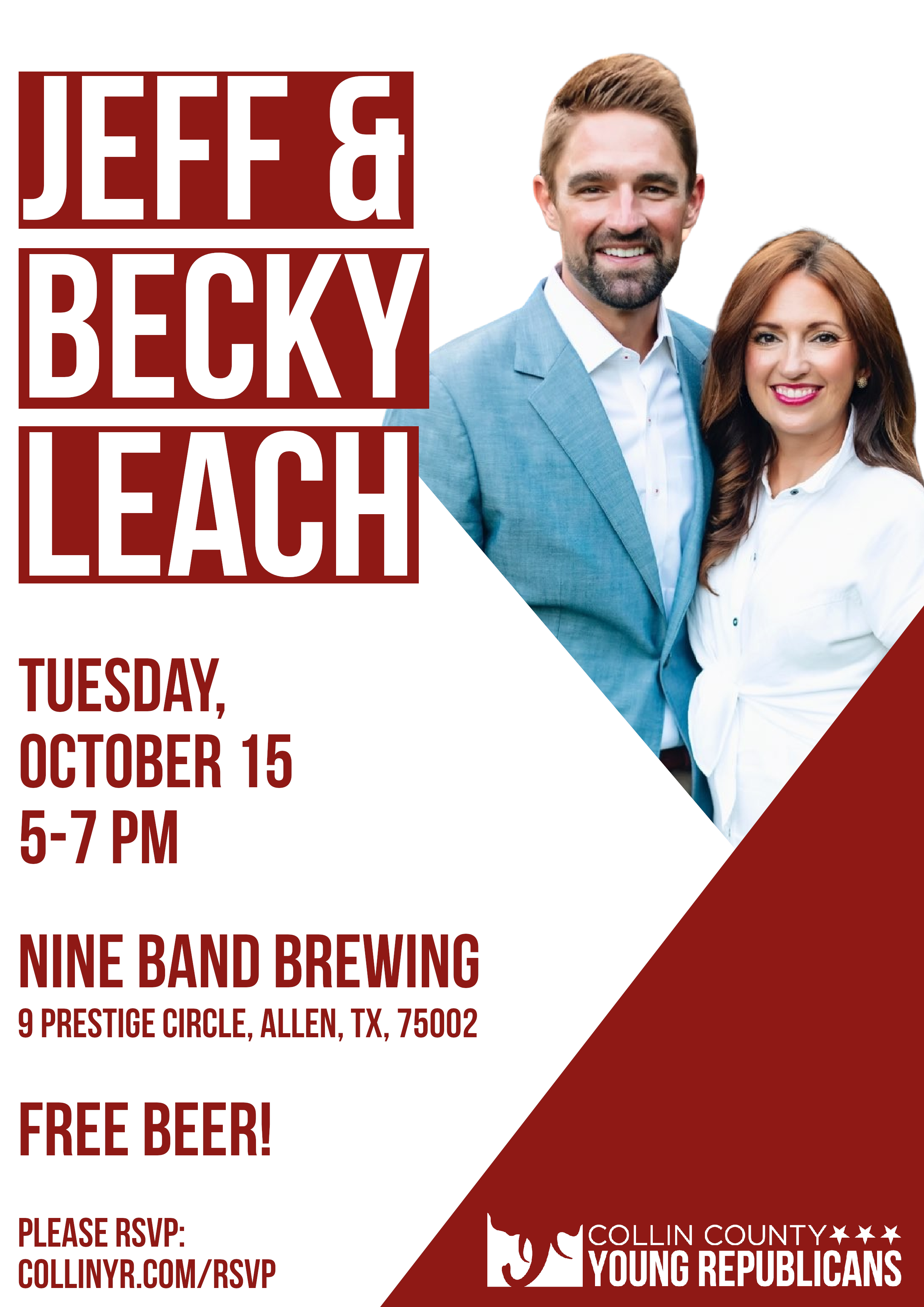 Please join us on Tuesday, October 15 as we get together with fellow YR, Texas HD 67 Rep. Jeff Leach! This will be a great opportunity to meet Jeff and hear about his work in the Texas House, as well as learn how YRs can get involved ahead of the coming 2020 elections.